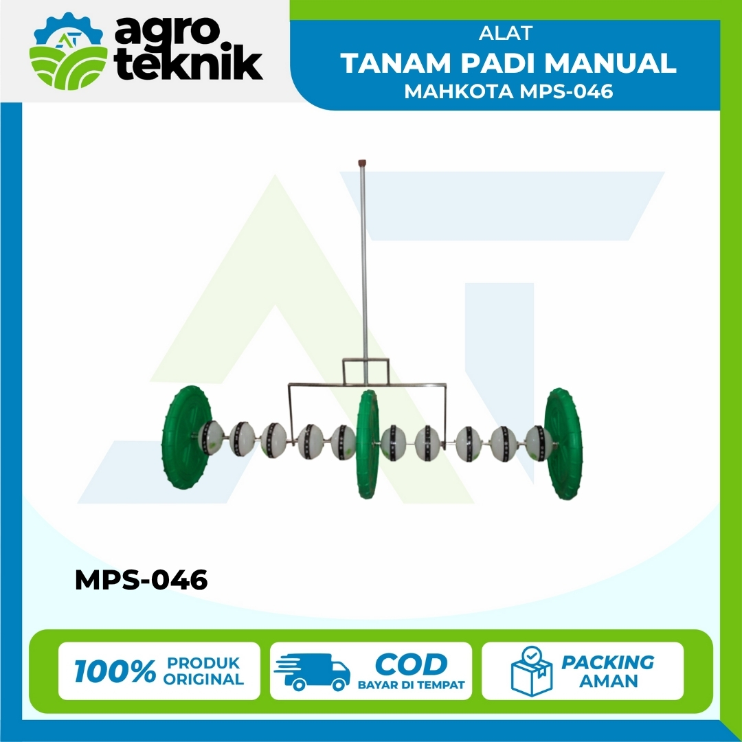 Alat Tanam Padi Manual Mahkota MPS-046 (Paddy Seeder) adalah alat penanam benih padi secara langsung yang efisien dan membutuhkan biaya operasional sangat rendah. Dirancang dengan 10 silinder penanaman, alat ini mampu menanam bibit padi dalam 10 baris sekaligus dalam sekali dorong. Alat ini sangat ringan (9.5 kg) dan dioperasikan secara manual, menjadikannya solusi ideal untuk petani yang ingin meningkatkan kecepatan dan kerapian penanaman tanpa perlu mesin berbahan bakar. MPS-046 menjamin jarak tanam antar baris yang seragam (18.2 cm) untuk hasil panen yang optimal.