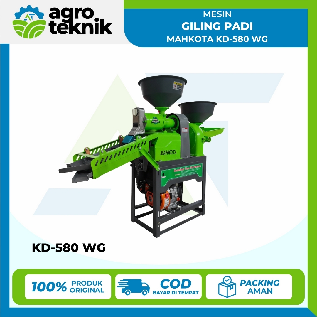 Mesin Giling Padi Mahkota KD-580 WG adalah unit penggiling padi multifungsi yang mengkombinasikan fungsi penggilingan padi (rice mill) dengan penepung (grinder) dalam satu mesin. Ditenagai oleh mesin 9 HP, mesin ini mampu menghasilkan beras putih hingga 170 – 200 kg per jam dan menepung bahan baku hingga 250 kg per jam. KD-580 WG sangat cocok untuk petani, peternak, atau UMKM yang membutuhkan alat serbaguna untuk mengolah gabah menjadi beras sekaligus menepung biji-bijian atau pakan ternak. Dengan tingkat beras yang dihasilkan mencapai 70%, mesin ini menawarkan efisiensi tinggi dengan tingkat kegagalan rendah.