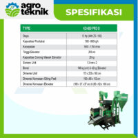 - Elevator dengan tinggi 205 cm dan kapasitas corong 20 kg memudahkan pengisian gabah secara otomatis, mengurangi tenaga kerja dan mempercepat proses.