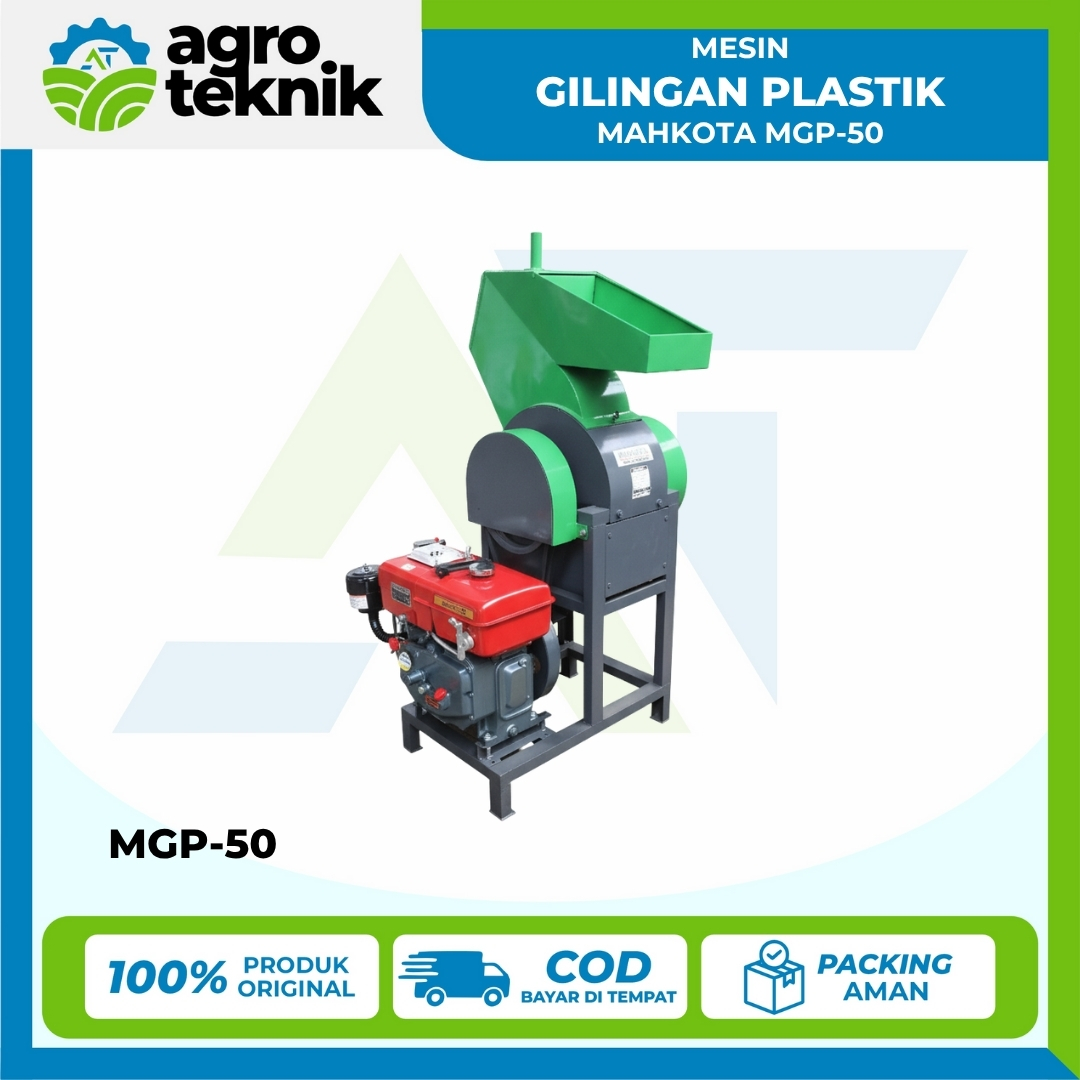 Mesin Gilingan Plastik Mahkota MGP-50 adalah alat penghancur (crusher) plastik yang dirancang untuk membantu proses daur ulang limbah plastik. Mesin ini ideal untuk UMKM daur ulang atau pengepul yang ingin memproses limbah plastik menjadi cacahan kecil yang siap diolah lebih lanjut. MGP-50 menggunakan sistem pisau Gunting Zig-zag dan didukung oleh daya 8 HP atau 3-5 kW (motor penggerak dijual terpisah). Dengan kapasitas mencapai 50 kg per jam, mesin ini adalah solusi ringkas, efisien, dan memiliki konstruksi kuat dari Bahan Pangkon UNP-50.