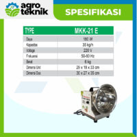Mesin Parut Kelapa Mahkota MKK-21 E adalah alat pemarut kelapa elektrik yang dirancang efisien dan higienis. Menggunakan daya listrik rendah (180 Watt) dan material Stainless Steel pada seluruh badan dan mata parut, mesin ini sangat cocok untuk penggunaan rumah tangga, UMKM makanan, hingga industri katering. Dengan kapasitas memarut hingga 35 kg per jam, MKK-21 E mempercepat proses pengolahan kelapa dan bumbu dapur lainnya, menghilangkan tenaga manual dan memastikan hasil parutan yang bersih dan halus.