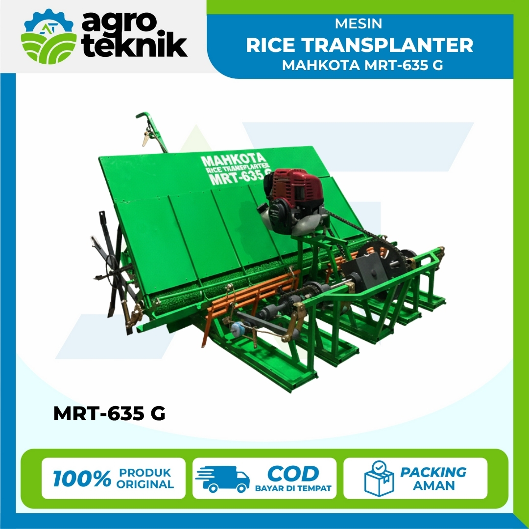 Rice Transplanter Mahkota MRT-635 G adalah mesin tanam padi modern yang revolusioner. Dirancang untuk menanam bibit padi secara serentak dalam 6 jalur dengan efisiensi tinggi, mesin ini secara signifikan mengurangi waktu dan tenaga kerja dibandingkan metode tanam tradisional. Ditenagai oleh mesin bensin 2 HP yang hemat bahan bakar, MRT-635 G sangat ideal untuk petani atau kelompok tani yang ingin meningkatkan produktivitas dan mempercepat masa tanam di lahan persawahan skala kecil hingga menengah. Mesin ini menghasilkan jarak tanam yang rapi dan konsisten.